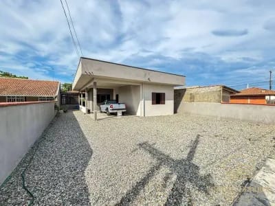 Casa em alvenaria a poucos passos da praia no bairro Salinas de Balneário Barra do Sul, Um terreno com tamanho de 325,00m² (13,00x25,00) e área construída de 134m².Uma linda residência com cobertura de laje, com 2 quartos sendo 1 suíte, 1 cozinha, lavanderia, sala de estar e TV, 1 banheiro social, garagem, churrasqueira a carvão. Quintal amplo todo murado trazendo mais privacidade. Essa casa fica na região do mar, a uma distância de apenas 300 metros da praia.